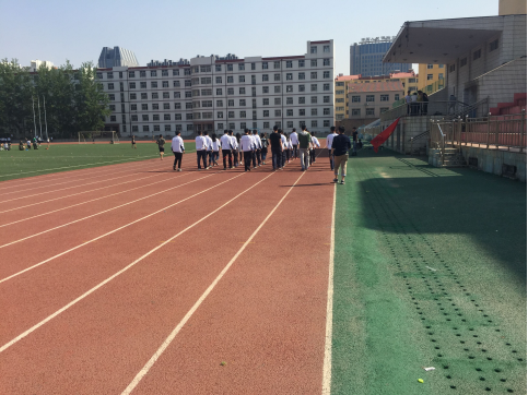 虽说才4月,但是中午的阳光一点不逊于夏天,照在身上像火烤一样,虽然天气很热,但是同学们的训练热情不减。开始在医务室旁边的道路上练习,但是为让训练效果更好,大家决定到主席台旁边的跑道上训练。同学们一遍一遍的练习正步,一声一声的喊着口号,正步踢的不标准再练,口号喊得不整齐再喊,力争做到最好。