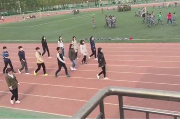 利用自习课的时间,班级同学在几个班委的带领下来到操场训练。同学们喊着嘹亮的口号踏着赋有气势的步伐,带着必胜的决心一遍又一遍排练着,走得也越来有模有样。