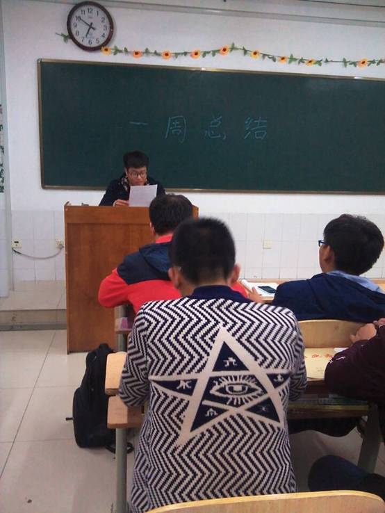 16年4月,软件7班召开了每周一次的班会,刘杰班长一一讲解了本周量化,根据本学期的量化成绩,制定了新计划。班长表态作为一名班长绝对要在其位,谋其职。这样才能起到带头作用。完善班级,提高班级各方面。