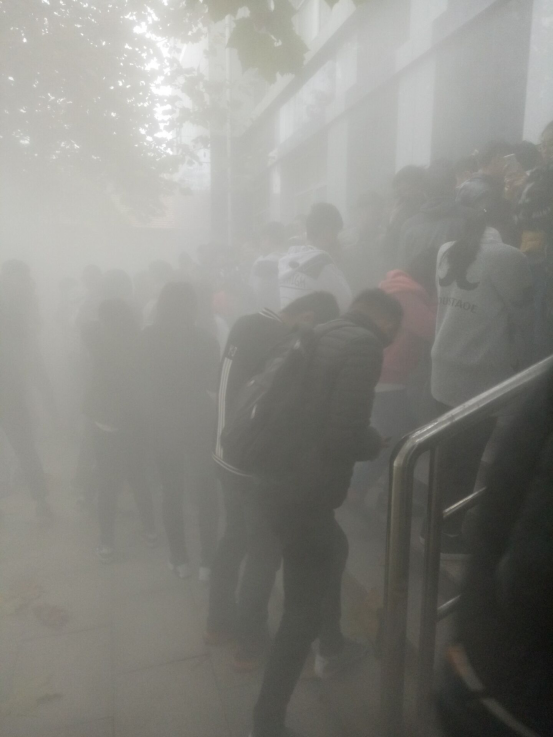同学们在结束下午课程后,开始了消防演练活动,一声哨响后,同学们蹲到桌下,捂住口鼻,有序的离开教室,在篮球场集合,待点齐人数后,各班陆续,前往灭火地点观看现场灭火,随着白雾的喷出,熊熊燃烧的火堆在白色烟雾的覆盖下,仅余几缕余烟。