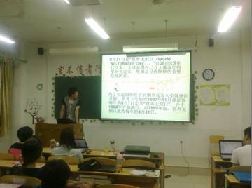 (3)积极配合学院开展的“无烟校园”活动,通过吸烟危害知识讲座、无烟宣传教育等活动,使同学们认识到吸烟的危害,进而远离烟草,打造无烟教室、宿舍。
