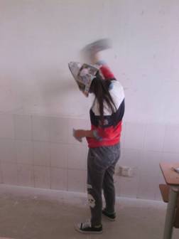 为了美化教室,创建一个温暖的教室,各班委全体出动,去商场忙着采购各种壁纸,各种饰品,于此同时卫生委员也带着各卫生小组长将教室墙面认真,彻底的粉刷了一遍,同学们带着纸帽,拿着口罩,身上都沾满了白色粉末。