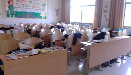 5.12日,软件系在张主任、邹书记的带领下,全体班主任共同参与下,组织了防震演练活动。当模拟信号发出后,班主任孙老师,按照软件系制定的疏散演练方案,组织学生们在教室1分钟逗留,全班同学都按照要求有序进行。