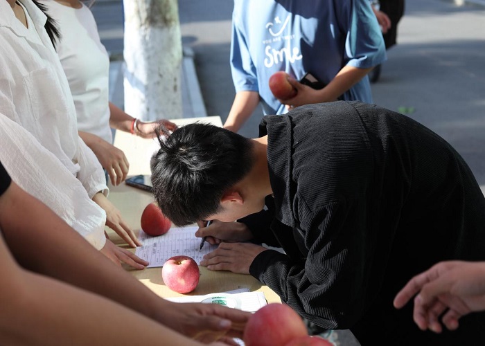 活动中,根据“5个瓶子换一个苹果”的规则,师生们将平时积攒的塑料瓶、易拉罐等交给志愿者,换到了属于自己的“环保”苹果。本次活动回收的塑料瓶、易拉罐等均用于资源循环再利用,助力环保。