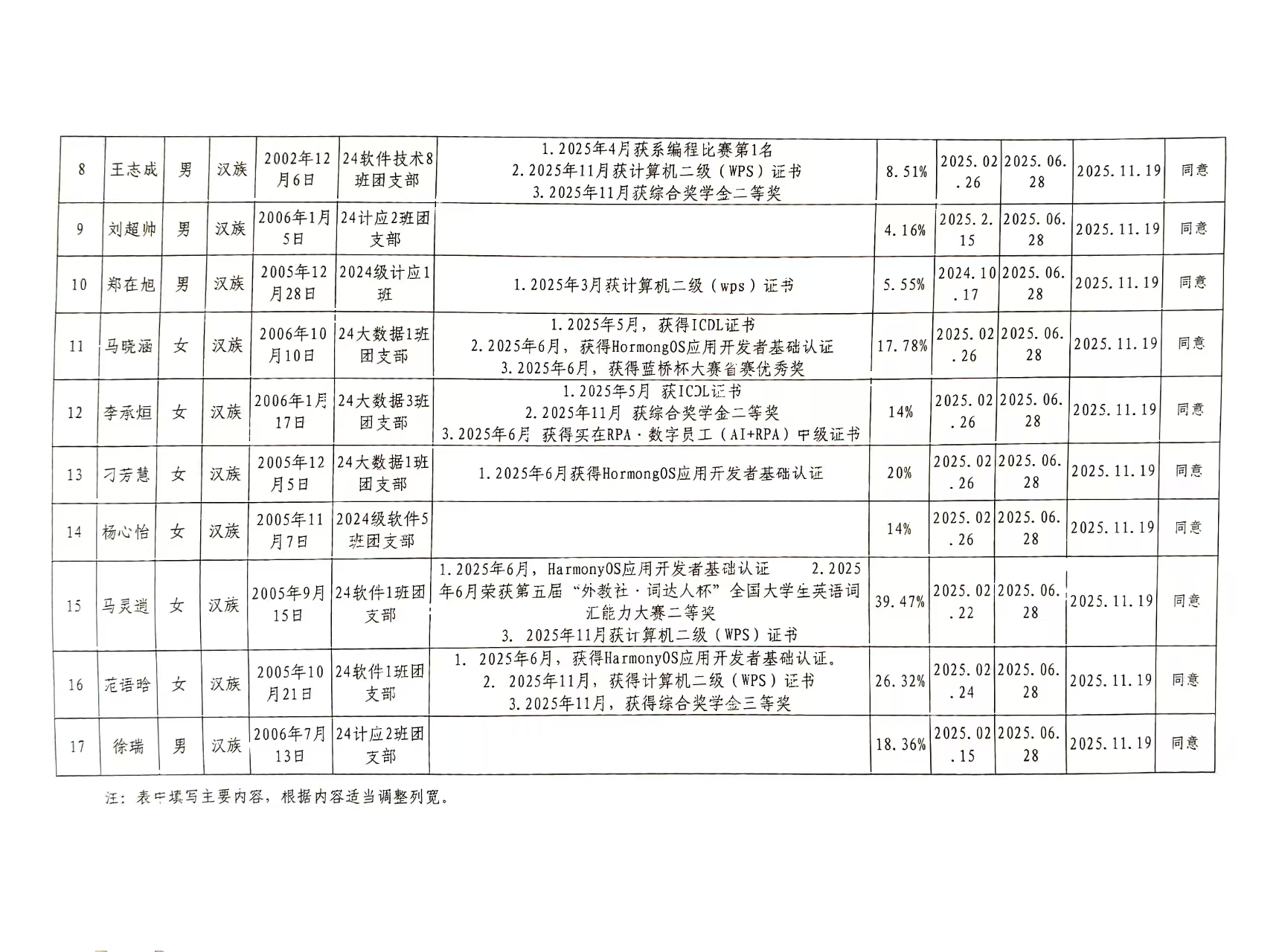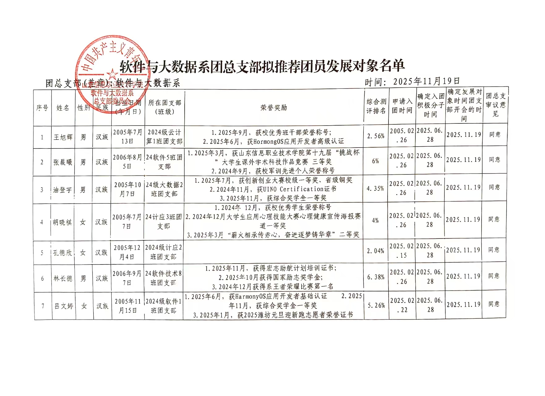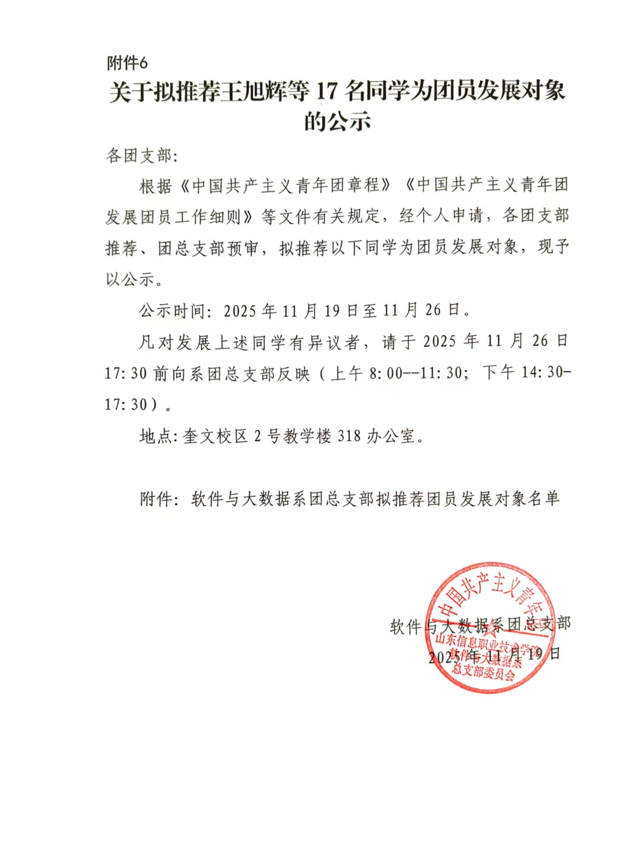 关于拟推荐王旭辉等17名同学为团员发展对象的公示
