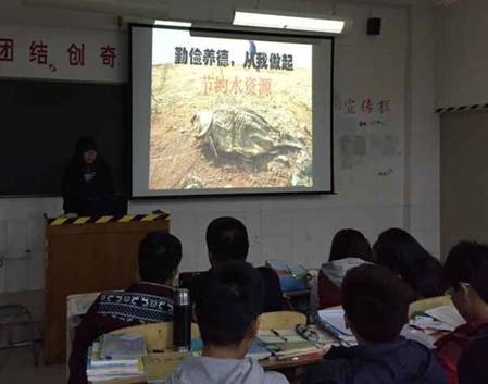今天在班内宣传委员的与团支书的组织下,开展了一场发人深省的“从点滴做起,珍惜水资源”的主题班会。