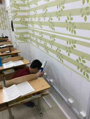 为了使网线安装的不那么杂乱,班长煞费苦心地购买了板子,让网线安装后也能整齐划一,不仅不影响使用还可使教室整洁美观。有提前来到教室的同学看到班里在拉网线后,也都积极的加入进来,大家分工明确,忙的热火朝天,教室原本的寒冷,也被大家如火的热情所驱散。
