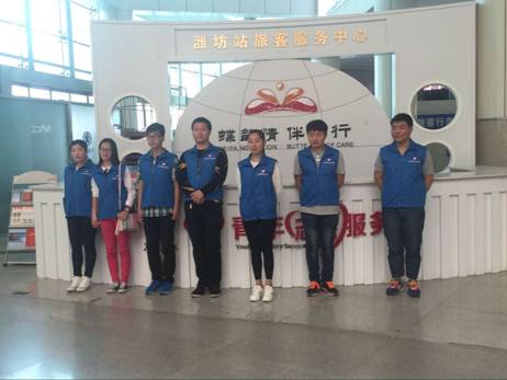 2016年4月23、24日,由鸢都义工秘书处蔺鑫亮带队,潍坊学院学生、我系姬洪源、李玉龙、葛玉杰等10位志愿者共同协作完成了2天的潍坊市火车站青年志愿服务岗的常态化志愿服务。