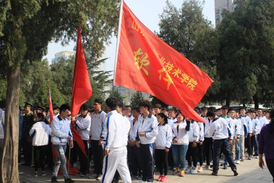 师生们徒步抵达烈士陵园。庄严的意识在一片肃穆中拉开帷幕,师生们敬献了花圈,代表着新一代大学生对烈士们的崇敬与尊重。随后全体师生集体默哀,最后在庄严的誓词下,很多同学都认识到自己身上肩负的历史重任,更要努力奋斗,珍惜这来之不易的幸福生活。