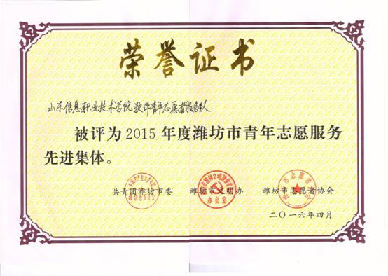 我院软件系青年志愿者服务队被评为“2015年度潍坊市青年志愿服务先进集体”