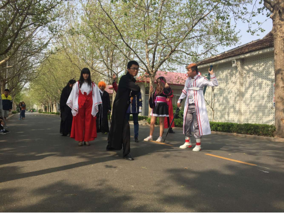 不畏炎热,穿上繁琐的服装,戴上炫酷的道具,每天在课余时间紧张的排练着,只希望在开幕式上给大家带来一场视觉盛宴。希望,在那天全校同学可以一睹我们动漫班的风采!