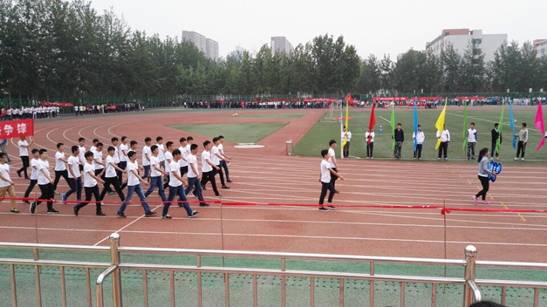 在开幕式开始的那一刹那,礼乐随之响起。飘飞的彩旗,承载着同学们的梦想和希望,伴随着激昂的音乐,仪容整洁的彩旗队首先进场。花样方队身着亮丽校服,受舞彩旗,成为一道美丽的风景线;身着军装的士官方队,整齐的队列与步伐,点缀的蓝色彰显着热情。