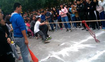 进一步丰富同学们的课余生活,强健体魄,增强班级凝聚力,山东信院软件系于11月2日下午4点,在篮球场举行了以“活力之源,激情飞扬”为主题的拔河比赛。本次拔河比赛以班级为单位,每个单位派12名队员,男生10名女生2名。抽签分组后以淘汰赛的形式进行初赛、决赛。比赛深受同学们的欢迎,同学们个个热情高涨,全系共有10支队伍参赛。比赛中,选手们在场上奋力拼搏,场外的观众和拉拉队不断地呐喊助威;赛场上每一位队员都把自己全身的力量贯注于拔 河绳上,每一个人的心也同时被紧紧地系在了一起,一心为班级荣誉系在了一起,一心为班级荣誉而顽强拼搏;再寒冷的风也阻挡不住同学们的热情。经过激烈角逐。