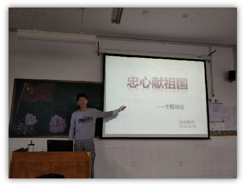 班会由组织委员策划,团支书主持,先是观看PPT,由今年奥运挂错国旗的乌龙事件引出了我国的五星红旗,进一步了解了五星红旗的结构及原理。然后一起讨论学习了一些著名的爱国人士,我国能有今天和谐安康的社会离不开那些为国献身的英雄人物,我们要向他们致敬。我国在逐渐强大,军事力量更是发展迅猛,通过一起观赏了我国阅兵式的图片,同学们也都内心澎湃,深感自豪。最后,观看了视频,视频中英勇的兵男儿也激起了不少同学去当兵报效祖国的欲望。