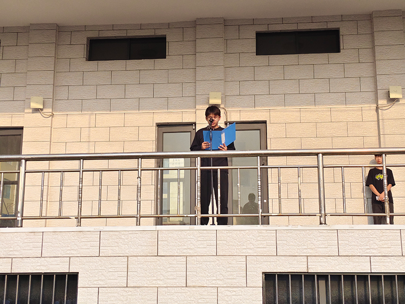 学生代表訾博强在国旗下发言,以专业学习历程为切入点,分享了在参与各类创新创业大赛、大数据项目实训中的感悟。他表示,从课堂理论到实战应用,从独立钻研到团队协作,在试错中积累经验,在互助中收获成长。新时代青年当以理想为灯塔,以行动作风帆,让青春在知行合一中绽放光彩。