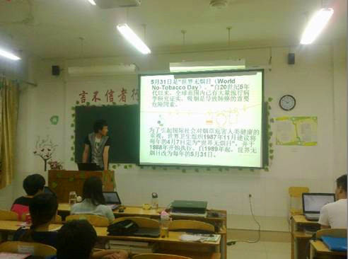 我们广大学生正处于身体成长发育阶段,吸烟对骨骼发育、神经系统、呼吸系统及生殖系统均有一定程度的影响。为了解对此我们11网络1班在杨凡同学的带领下开展了“世界无烟日,我们在行动!”的主题班会。
