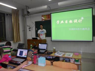 四、“学业目标设计”主题班会。本着明确目标、科学规划、注重细节、赢在大学的原则,组织全班同学召开了本次主题班会。首先和大家讨论了入学后的目标,现在大学已经过去一半,然后找学生分析现状,分析自己离目标有多远?找出原因,制定切实可行的实施计划----把握当下、赢在大学。