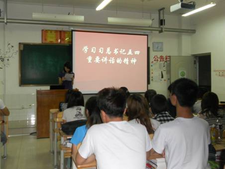 七、5月4日,中共中央总书记、国家主席、中央军委书记习近平来到中国航天科技集团公司中国空间技术研究院,同各界优秀青年代表座谈并发表重要讲话。在习总书记的带动下,我班开展了“学习习总书记五四重要讲话的精神”班会,在班会中,我们用利用班级的多媒体,观看了习总书记的讲话内容,会后组织全班同学发表听后感悟并经行了讨论。