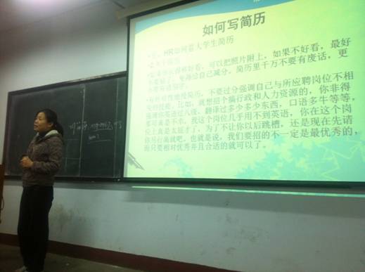 在此次班会中,武老师针对如何制作简历、制作简历的原则、避免出现的错误和注意事项等进行了讲解,为同学们下一步就业提供帮助。