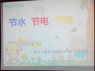 “节水•节电•节粮”主题班会能过团支书带领大家一起学习认识现在水资源、煤矿资源等各类资源的匮乏,倡仪大家养成节约的好习惯,还跟大家一起总结了节水节电的好多小妙招,希望大家在日常生活中能遵守照做,做到人人节约、处处节约。