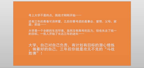 本次班会主要围绕以大学里的各种活动开展,阐述了在大学里如何做到提高自身能力和激发自身潜能的方法和意义,让同学们意识到毕业以后竞争的激烈和脱颖而出的魅力,使同学们更加积极的去接受挑战,对抗挫折!