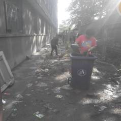 对于长期容易忽略的卫生死角:学院自行车棚、宿舍楼后面我们都主动完成了清理工作。