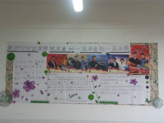 为迎接学院迎来专家评估,在班主任的安排下,本班做出了以“迎评估回访,促学院发展,树一流形象,创一流业绩”为主题的班级板报,以下是对这次板报制作的总结。