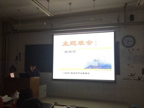 为了增强同学们的感恩意识,从而在自己的心中培植一种感恩的情感,无论对待父母或老师,朋友或对手,快乐或悲伤,都能以一颗感恩的心去面对。同时在班内营造一种“人人为我,我为人人”的良好风气。通过积极的方式,让大家更乐观地面对生活,面对人生的坎坷。我班于2014年11月27日感恩节之际开展了感恩教育主题班会。