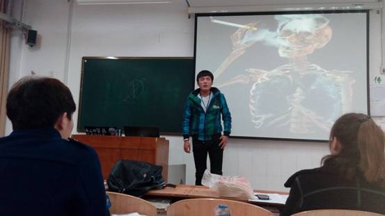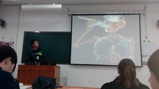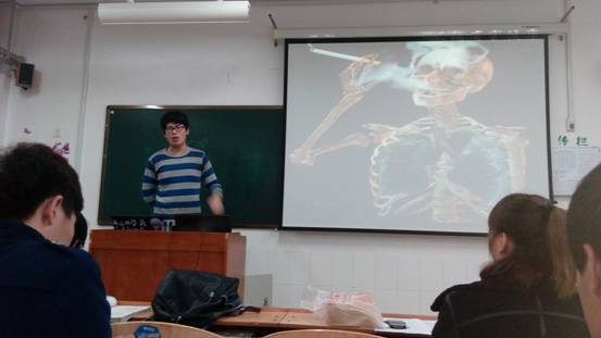 通过几幅幻灯片的放映,我们都深有体会,也深深感到了吸烟对我们的影响。随后我们很快进入了状态,同学们都上台来说出了自己的看法。我们分别先找了吸烟的同学和不吸烟的同学来做了演说: