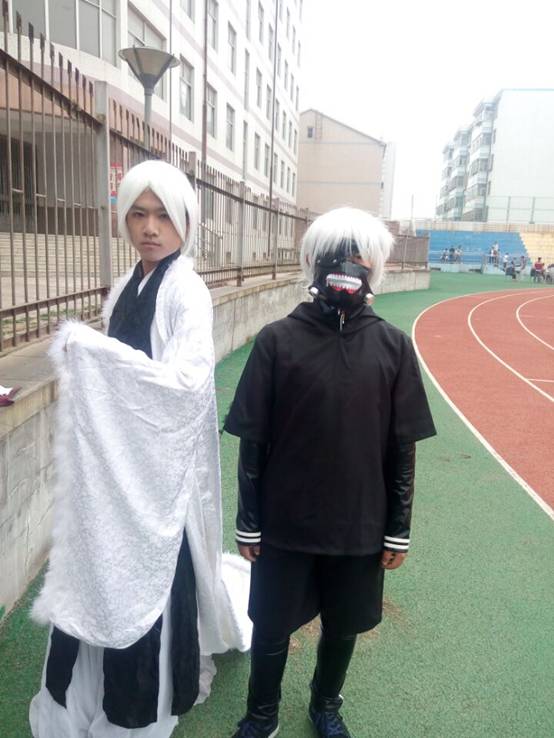 运动会开幕式上,在全校学生入场的时候,我班同学大展风采,牛宝坤和张崇鹏cosplay大胆采用的形式,完美的展现出了本班的特点,更好的颂扬了我班的风采和特色。下面是我们班这两个学生的雷人造型。