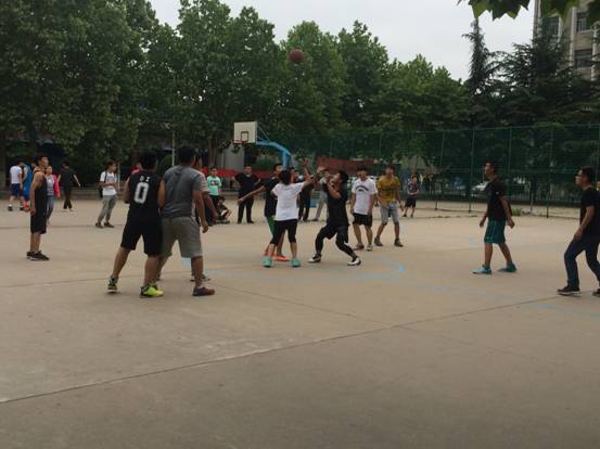 课后三三两两的聚集,呼朋唤友的召唤,一场团队的较量在球场展开。