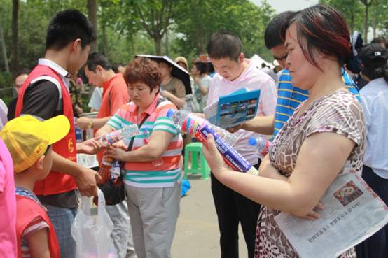 志愿者为考生家长送去矿泉水