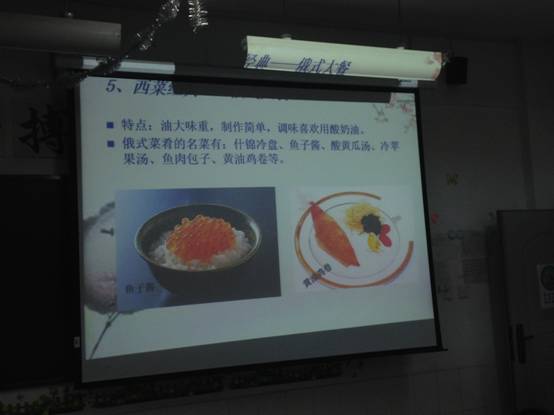 为了丰富同学们的味蕾和生活,我们班进行了一次外国饮食上的主题班会,同学们可都是留着口水在开这次班会,我们这里有浪漫的法国大餐,有经典的俄式大餐,还有让人回味的意大利面,然而这些大餐中往往折射出一个地域的文化特点,不同的文化,产生不一样的美食,中国菜含蓄内敛,法国菜奔放,各式各样的大餐汇在一起,就是不同文化的交融。