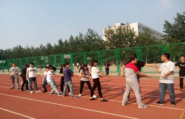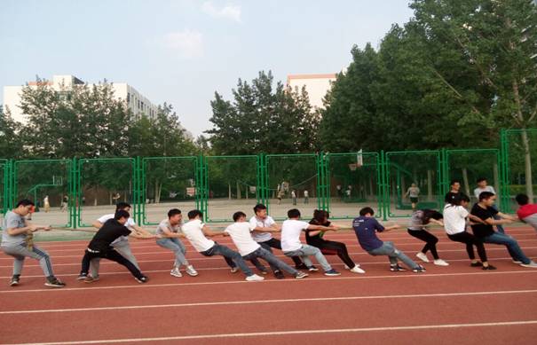 2015年5月18日下午4:30点,拔河比赛也如期在操场举行。这次我们班要与13软件5班进行pk。尽管天气有些炎热,但前来助威加油的人仍不在少数,使赛场氛围十分热烈。比赛规则为每班派出10男3女搭配,最后绳子倾向哪边哪边就获胜。当比赛开始的哨声响起,队友们全都紧握绳子,憋足了劲把绳子往后拉,几个个头比较大的同学也是使出浑身解数,身体努力向后倾斜。同学们在旁边为自己的班级加油呐喊着,每个人都恨不得抓起绳子跟选手一起努力,使得整个场面既激烈又温馨。活动重在参与,同学们感到这个活动很有趣。