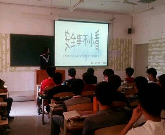 10月23日下午,在班级团委的组织下,我班开展了以“安全事不小看”为题的安全教育主题班会。并希望通过此次班会让同学们警惕身边的安全隐患,提高个人安全意识。