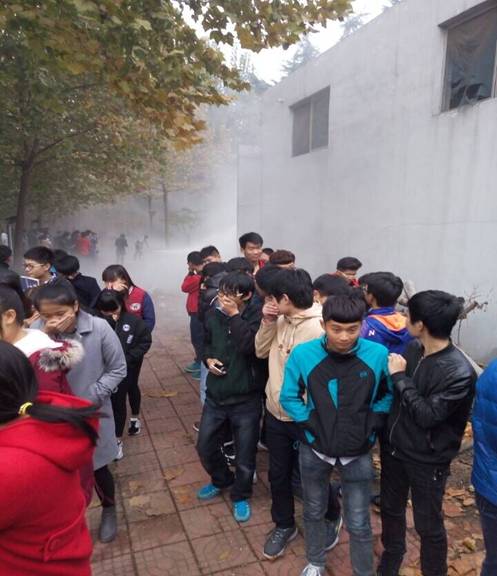 2015年11月9日周一下午四点,我软件系模拟了消防逃生演练。为什么选择这一天呢,因为11月9日是全国消防日。下午四点,我们都准备好了,一阵哨声响起,我们便按之前排好的顺序沿着楼梯跑下去。走廊里,楼梯道上上,弥漫着烟雾,有刺鼻的味道。烟雾浓度比较大,眼镜几乎都快看不到东西了。我们捂着口鼻,跑到篮球场集合了。集合完毕后,我们又排队去了学校专门设立的灭火场地。那里有学长拿着灭火器进行演示灭火。看完演练就结束了。