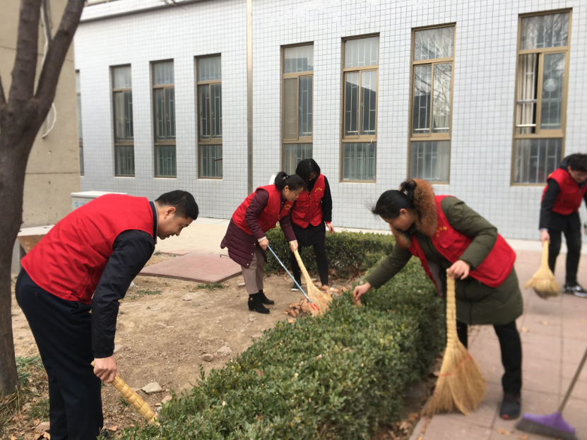 天气虽略有寒冷,但丝毫抵挡不住教师志愿者们的热情和干劲。志愿者们手拿各种卫生工具,在校园内集中开展了清洁美化行动,经过一下午的辛勤努力,所到之处焕然一新。最后志愿者们把地面上、树丛中的垃圾全部收集到垃圾袋里,倾倒进垃圾桶。