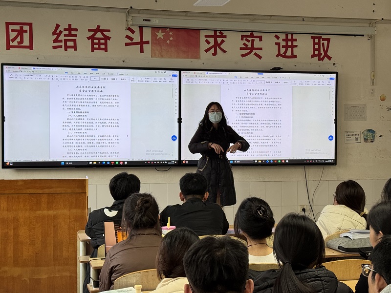 活动第一阶段由辅导员主持召开班级主题班会。结合学生宿舍电子设备集中、充电需求突出的特点,辅导员将宿舍用电安全作为核心内容,通过火灾案例视频、违规用电实物展示及事故成因分析,重点阐明“热得快”等大功率电器使用、私拉乱接电线、充电设备无人看管等违规行为带来的严重危害。班会组织学生围绕“宿舍禁用电器标准”“设备安全充电规范”“离寝断电流程”展开研讨,学生主动分享安全经验,承诺严格遵守宿舍安全管理规定。